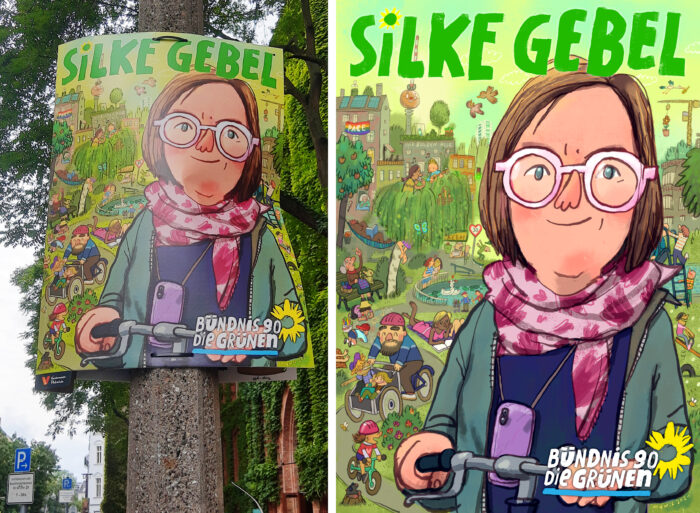 Mawil macht jetzt auch mal einen auf Seyfried und hat für Silke Gebel (Berlin Mitte/Die Grünen) ein Wahlplakat gemacht.