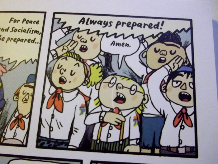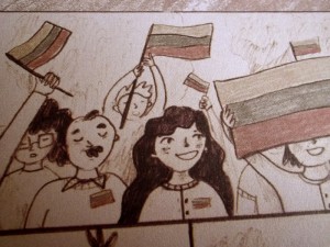 In March 2013 Mawil was invited by professor Felix Ackermann to hold a workshop with the lithuanian and belarusian students of the center for german studies at the EHU European Humanities University Vilnius (Lithuania) about „comics on family storys“. After the workshop we encuraged the 4 best students to continue with their stories to what become later the idea of an printed publication. After one year of work and with a lot of support from Daivita Jackeviciene and the German Federal Foreign Office luckily our little book with 100 pages of Lina Itagaki, Miglė Pužaitė, Viktorija Ežiukas, Viktoryia Andrukovič (and some pages of Mawil’s Kinderland) was printed in english language and can be ordered hopefully now via ISBN 978-609-8122-32-9 or on this website: https://drawingthexxcentury.wixsite.com/comic-book.