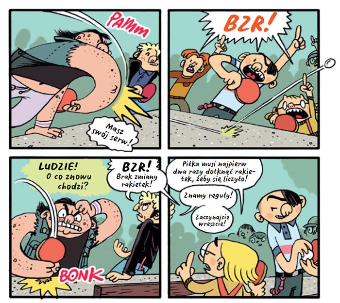 Die 300 Seiten wurden übersetzt von Grzegorz Janusz und Jarosław Składanek musste alle Sprechblasen und Soundwörter neu lettern ( mit dem internationalen Mawil-Font von Viktor Nübel ) . Falls zufällig jemand wissen will, was „KKW – Kein Kellenwechsel“ auf polnisch heisst :