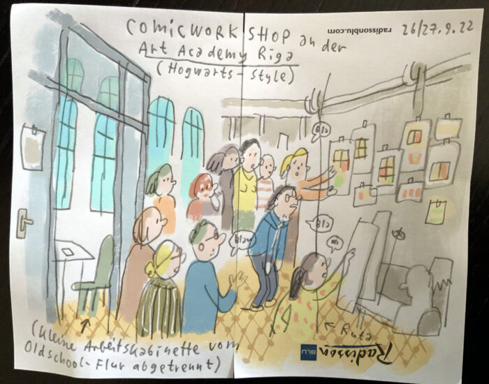 Wir machern mit Ruta einen kleinen Comicworkshop an der Art Academy …