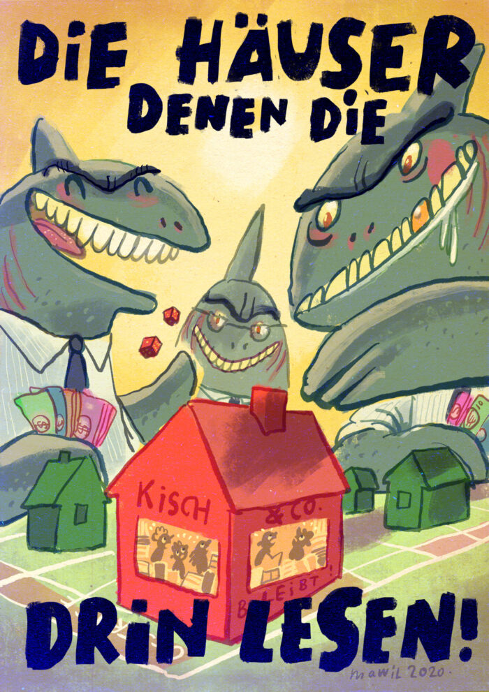 Soli-Plakat für die Buchhandlung Kisch & Co., aktuell prominentes