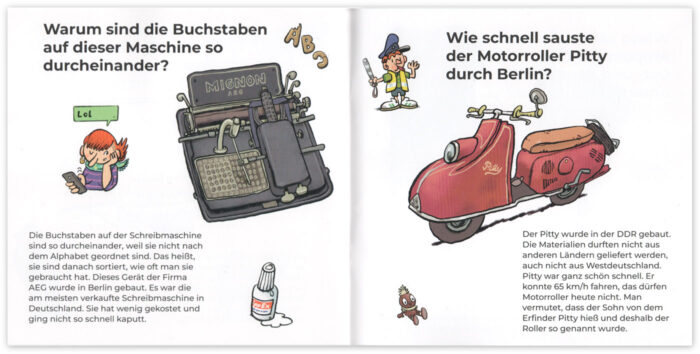 Illustrationen fürs Kinder-Rallye-Heft zur Dauerausstellung „BerlinZEIT – Die Stadt macht Geschichte“ im Stadtmuseum Berlin im Ephraim Palais).