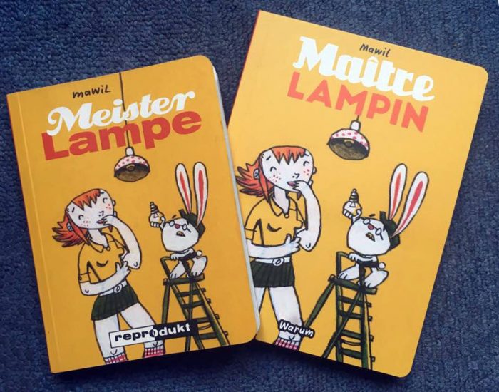 Enfin! Jetzt gibt es Meister Lampe, Mawils kleinstes, billigstes und albernstes Comic mit den rundesten Ecken, endlich auch auf französisch bei WARUM. Hier das erste Handy(?)foto vom Teppich(?)boden des Verlegers. Maître Lampin ist etwas grösser und teurer geworden, dafür aber bestimmt noch alberner.