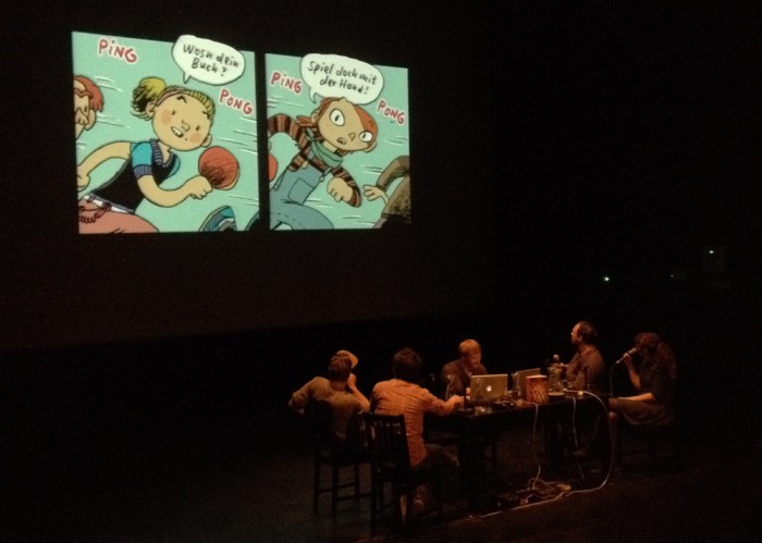 Für das Kinder- und Jugendprogramm des 15. Internationalen Literaturfestivals Berlin soll noch mal aus „Kinderland“ vorgelesen werden. Dabei helfen Reading Panels, die ComicleseCombo um Katja Klengel, Tim Gaedke, Matthias Lehmann und Thomas Bröse (Sound/Bild), moderiert wird von Lars von Törne (Danke fürs Foto) und Katja Lüthge.