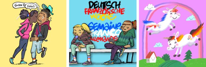 Illustrationen für die Veranstaltungsreihe „Deutsch Französische Woche / Semaine Franco Allemande“ der französischen Goethe-Institute im Print-, Online- und Quadratisch-Praktisch-Insta-Format. /// Illustrations pour la série de manifestations « Deutsch Französische Woche / Semaine Franco Allemande » des Goethe-Instituts français.